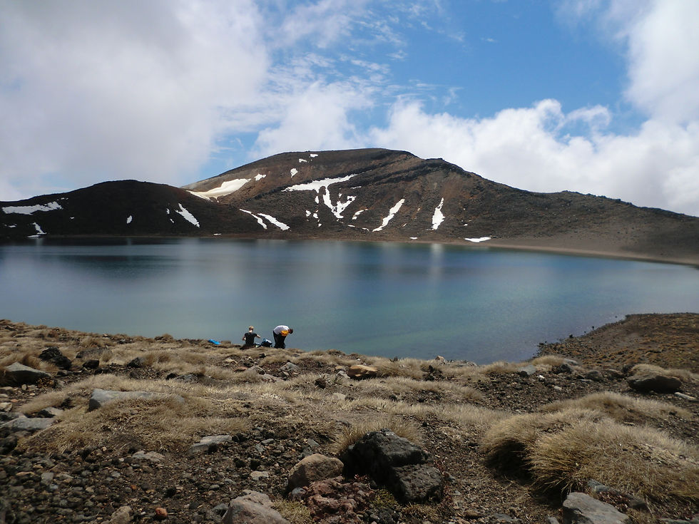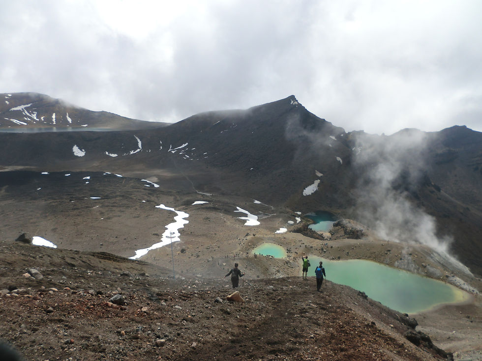 We slid our way down the sandy face, passing the ‘Emerald Lakes’ and swinging round to the left to go to the ‘Blue lake’. We stopped there for lunch, desperately tempted to go for a dip, but we quickly remembered that we were currently about 1700m above sea level and when you stop moving it gets rather cold rather quickly.