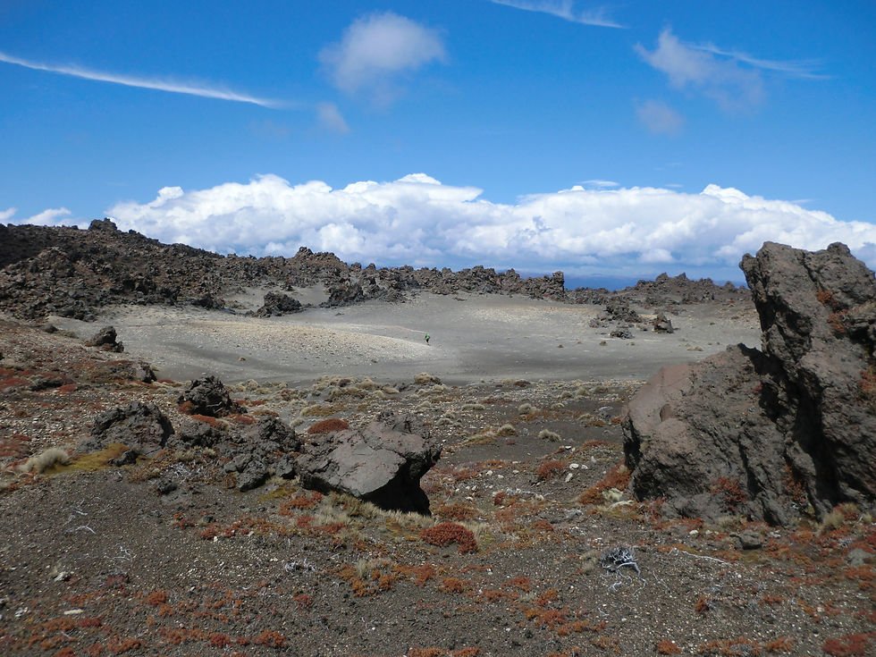 At this point we broke from the crossing and the crowds and were, more or less, alone while we hiked on, down towards the endless rocky wasteland we saw before. We followed one of the streams from the ‘Emerald Lakes’ above, now brilliantly white, as it carved steeply down until the land levelled off and we were amongst the rocks that were in fact much bigger than they had looked from above. I had great fun reciting how Father Ted explained perspective to Dougal to my North American friends, though I think it could be one of those you-had-to-have-seen-it sort of things.