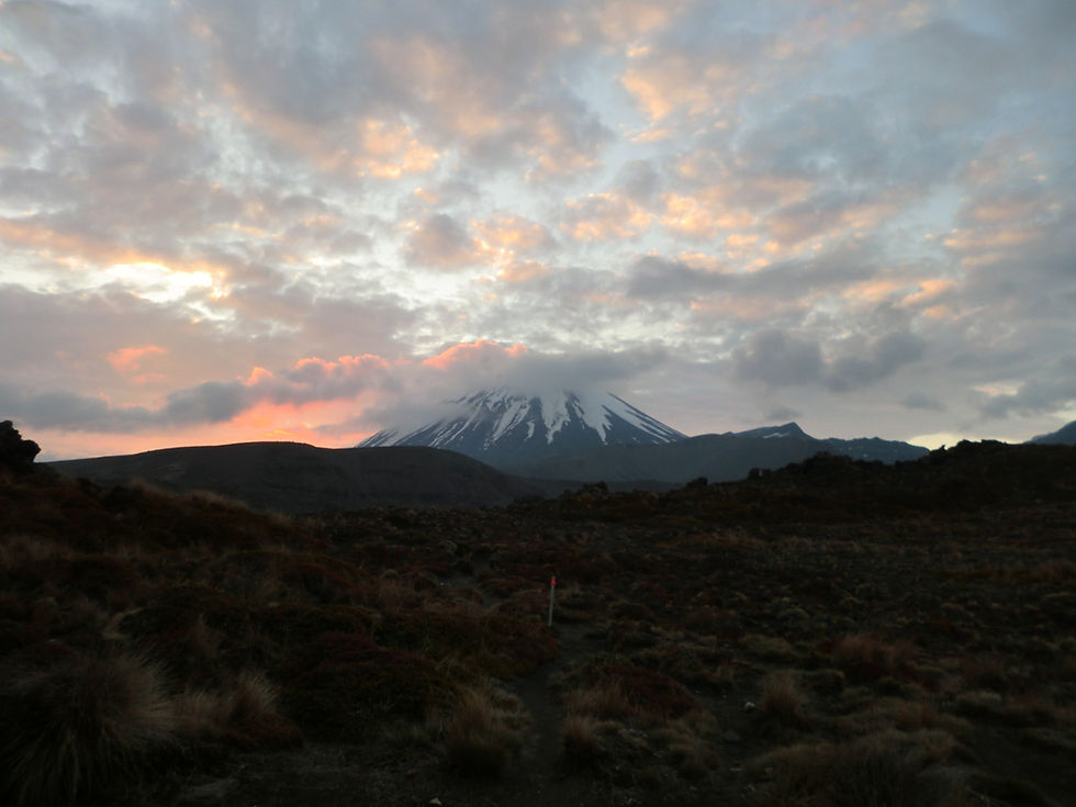 We were sharing the hut with about 10 other people. Most of them were taking the recommended four days to do the circuit so we didn’t expect to see them the next day as we had planned to set off early to do two day’s walking in one. We were treated to a gorgeous sunset behind Mount Doom before getting an early night.
