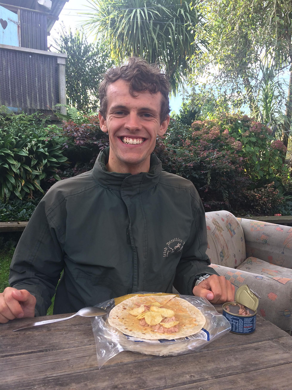 We then shuttled the rafts back to the top, with a raft, a kayak and Kaz (amazing kayaker) all on the roof of Justus’ car. Having lost some of our paddlers we only sent one raft down the second time. On this occasion we managed to flip the raft going over the first waterfall and were stuck in the plunge pool, unable to flip the raft. This meant that we had to go over the next waterfall sitting on the underside of the upturned raft. We headed off over and it worked remarkably well! Probably the smoothest of all the runs. We managed to flip at two-tier again but thankfully no more injuries. Back at the top we stopped for nachos (I had a wrap with peanut butter, tuna and crisps). After we had picked up Jasmine from the hospital we went to Justus’ house in Tauranga where he made pizza for us all. It was a very chilled evening with about 12 of us staying.