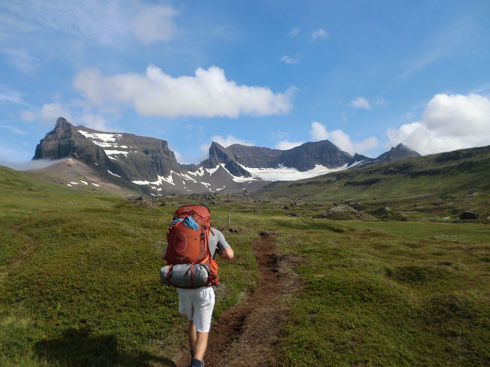 This meant we had another tough but rewarding climb over another ridge. This revealed a beautiful glacial meadow filled with almost luminous green moss, much like we had seen along the way. This opened up to the gorgeous fjord below.