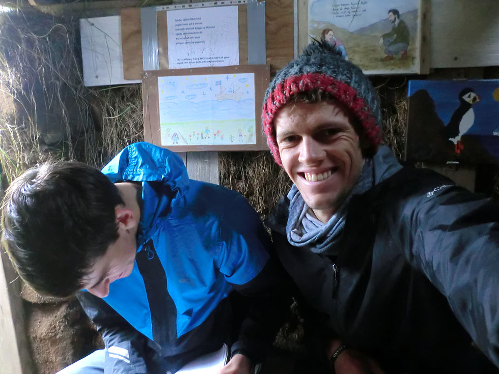 Peanut butter wraps were the order of the day, plus some more Agatha to rest our legs before we continued up again to get to the campsite. The wind picked up, so we weren’t as warm and when we reached the junction of many paths we were unsure of the correct one so we climbed higher to try spot the campsite. We saw it below and headed straight for it. There is something quite satisfying about walking off the beaten track. It was still wet under foot which displeased Sam as he discovered both his boots have holes in the soles by his heels. We met a family when we arrived, and the father had his PhD in lithium batteries. There was a drying room for our boots and socks, and we had the cook shelter to ourselves once we pitched the tent. We played cards and cooked our couscous and lentils for dinner. After getting lonely we went into the cabin to say hello to an elderly touring group. There were four Americans (a couple from Wisconsin and sisters from Idaho), a Swiss couple, a Kiwi man and their female Icelandic guide. I had spoken to the kiwi earlier as he tried to light the bbq so they could cook their lamb. He was a cattle farmer for 20 years. He hadn’t taken any holidays before so now he is traveling the world. They invited us to sit and after some chat we were offered some Icelandic lamb, potato and a delicious sauce! Such a treat. The kiwi was very funny with many one liners and the Swiss lady was very intelligent, speaking 5 languages. The whole party was great company. A little while later the guide brought out song lyrics (in Icelandic) for us all to sing. She gave us her rendition, then we had a practice before struggling through in the end. Apparently, we sounded quite good. Around 21:30 we took our leave of them to read some more Agatha.